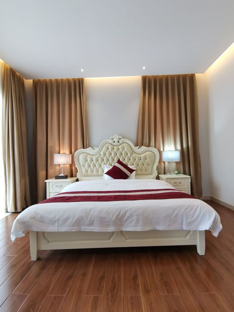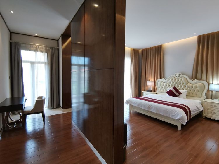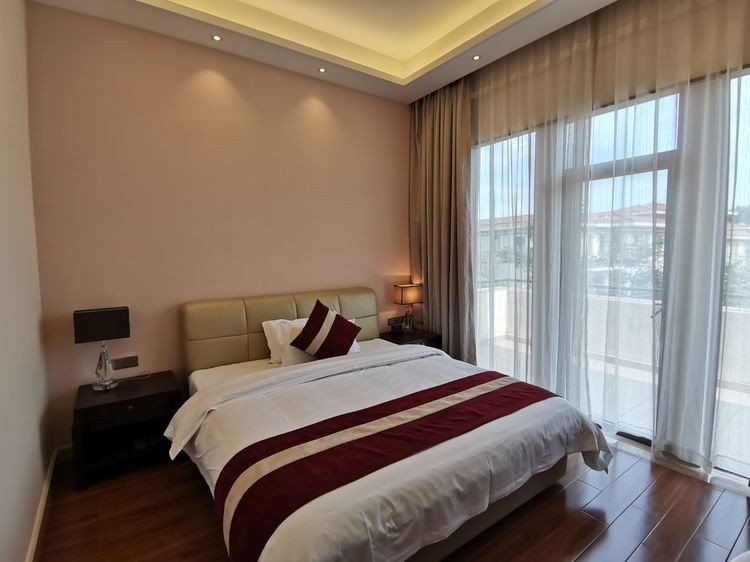 别墅选择优质的床上用品,坚持一客一换,床铺上全是阳光的味道,给您一个优质的睡眠。