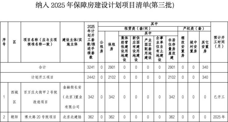 不过好消息是,北京保障房虽然没有像共产房那样集中供应,但是建设计划一直在进行,最近2025年第三批保障性住房建设筹集计划公示。