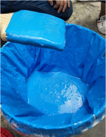 买回来后打开,的确没有味道,很环保。师傅也说雨虹防水这款防水涂料质量不错,很好涂刷,流平性好,立面不流挂,施工也容易上厚度。