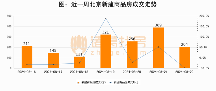 【北京成交日报】08月22日新房成交204套、二手房715套;涨价房源152套