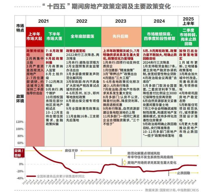 “十四五”期间,在周期波动、供求关系发生重大变化等因素影响下,房地产市场进入深度调整阶段,房地产政策也随着市场形势变动及时调整和优化。