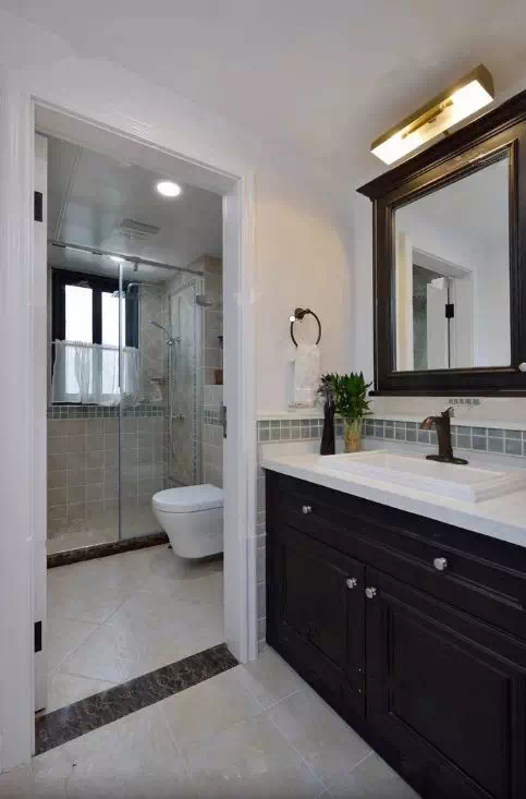 矮墙和玻璃隔断组合在一起的方式,防水能力也很好,干区湿区分明,而且矮墙还能展现出不一样的风格,更有特色!