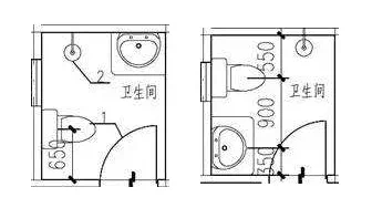 比如说正方形的卫生间,一般都是左边这样的布局,也可以灵活变动下,改造成右边这样,在视觉上也更整齐。