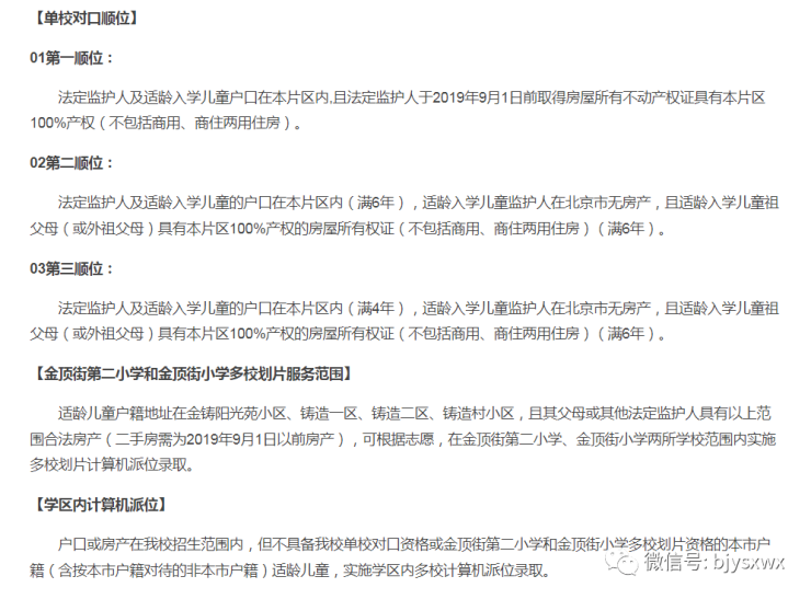 从石景山区2023年小学招生要求来看,部分小学有入学顺位说明,京京以金顶街第二小学为例,如下所示: