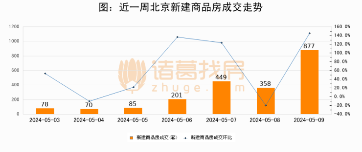 【北京成交日报】05月09日新房成交877套、二手房658套;涨价房源305套