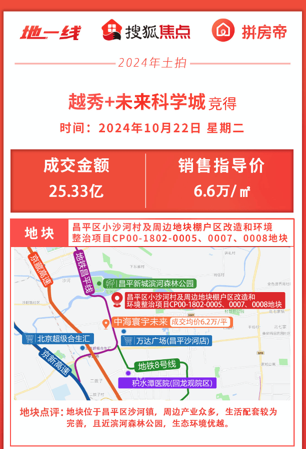 地一线|越秀+未来科学城以25.33亿元拿下昌平区小沙河地块