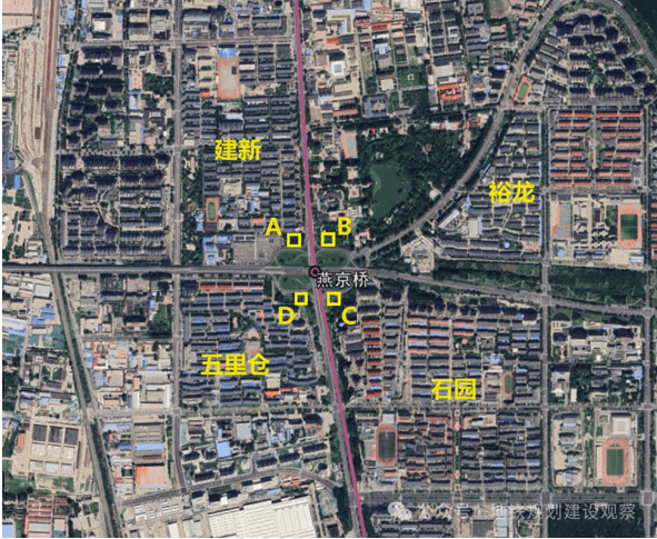 从上图来看,燕京桥不仅从高架改为地下,位置比此前规划图要靠北一个路口,就设在桥区正下方。通过在四个象限设置出入口,可以覆盖石园、裕龙、五里仓、建新4处大型居住区。
