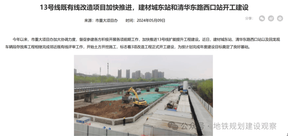 清华东路西口站的换乘已经开工建设,届时可通过13号线通达西直门、上地。