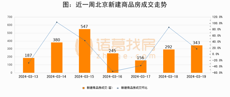 【北京成交日报】03月19日新房成交343套、二手房618套;涨价房源124套