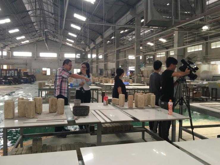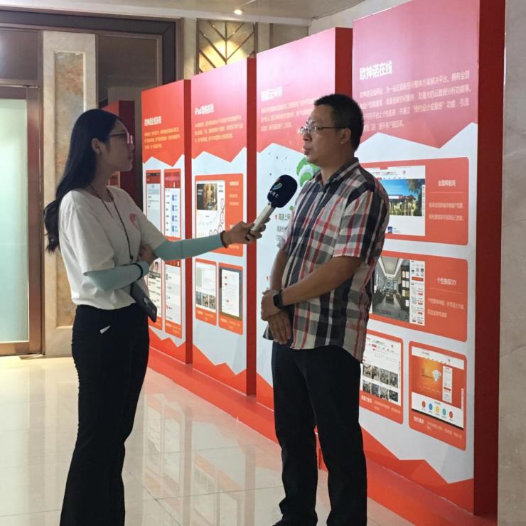 ▲欧神诺三水基地副总经理蒙臻明先生在接受电视台的采访