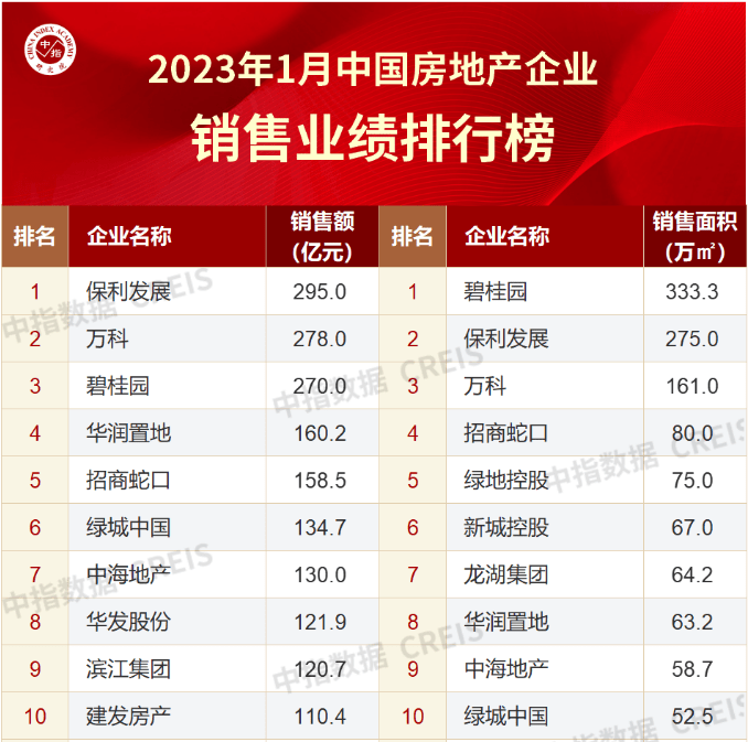 房企“开局战”:1月保利销售额位居榜首,华发、滨江挺进前十