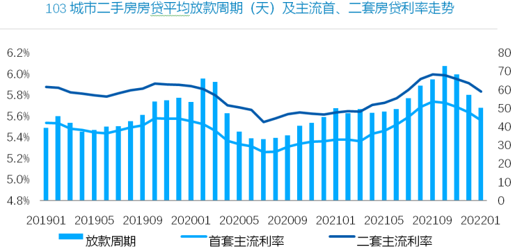 贝壳研究院认为,“一方面,房贷进一步降息,银行放款更快。2月103个重点城市主流首套房贷利率为5.47%,二套利率为5.75%,均较上月回落9个基点,为2019年以来单月下降的较大幅度,其中北京、上海等房贷利率均下降;2月103城平均放款周期为38天,较上月缩短12天,包括北京、深圳在内,近四成的城市放款周期不足一个月。”