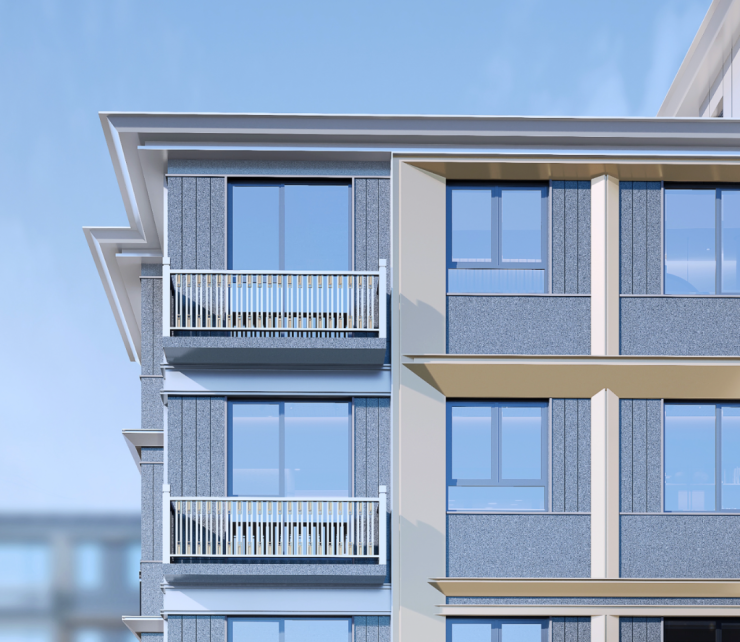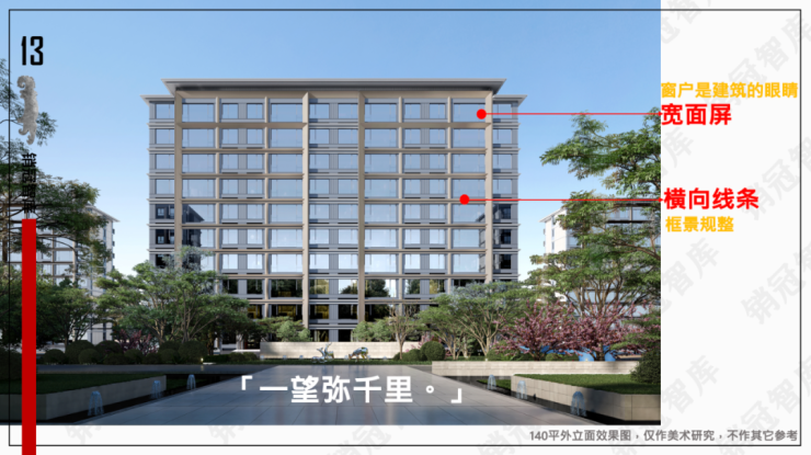 2、用横线的大框线条,把窗景整合起来,让外立面看起来更加规整。