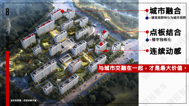 「城市融合」则是在建筑铺排时,楼栋正面和反面的脸,尽量沿着路网,让行走经过的路人,也能看到社区美的一面。