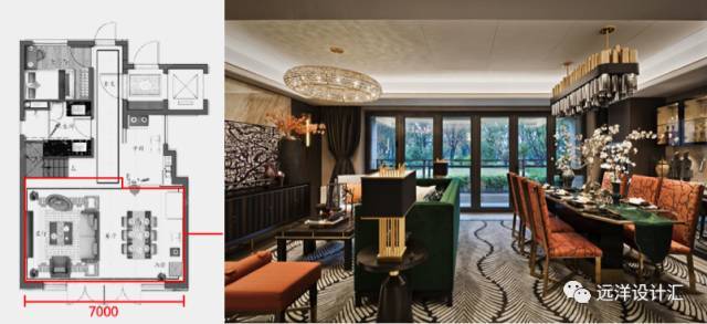 然而,户型也并不是面宽越大就有特别优势,不少产品结合精装,通过对功能房间的重构,打造出极具特点的展示效果。以北京某叠墅项目为例,其下叠户型首层面积约为90㎡, 7米面宽、12.45米进深。在设计上,其追求社交展示性,将老人房置于北侧,南向为横向通面阔的客餐厅,并和南侧院落连为一体,豁朗的空间和诱人的通透性,往往让部分客户忽略掉面宽较窄和老人房朝北这些缺憾。
