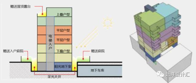 第二种是沿面宽方向上中下叠采用咬合叠加的模式,其优点在于较传统叠拼实现了更大开间数这一产品诉求。