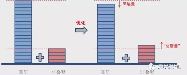 当原产品组合为高层+4层叠墅时,若优化为高层+5层叠墅,则“总墅量”提高,项目总货值可能更优。