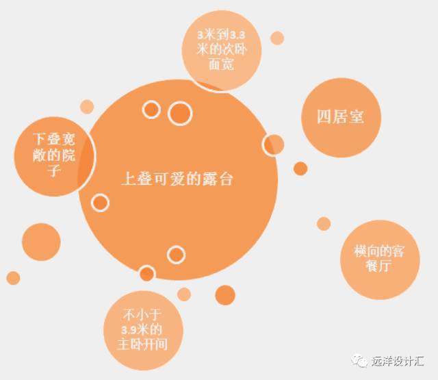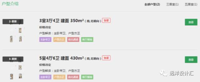 如图所示,套型、面积、朝向通常是客户了解产品的排名前列印象,同时也是客户取舍一个产品的较基本评价指标,笔者将其转译为产品分类要素即为居室数、面积段和开间数。