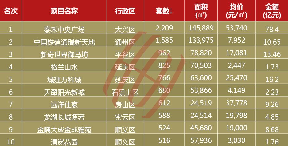 成交量降六成!2017年北京商品房市场成交排行情况汇总