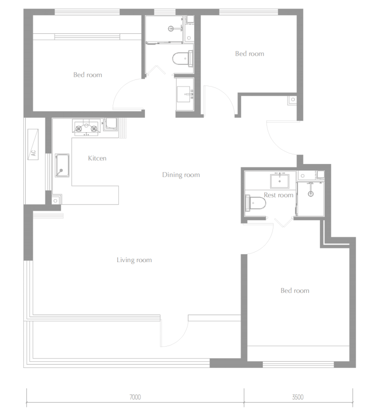 四叶草格局融入5.6米宽厅。实际感觉其实非常阔,主卧270°采光还有步入式的衣帽间,以及酒店双台盆的卫浴。主卧飘窗会给大家一组收纳柜