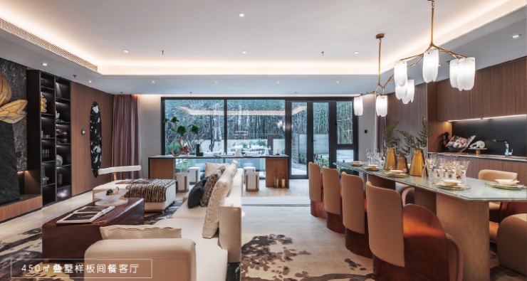 建面约450㎡叠墅,南北双院,超得房率,功能分区,更大面积尺度,改善置业一步到位。