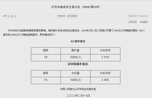 由于疫情影响,经济下行压力较大,为促进经济恢复增长,国家陆续出台刺激性经济政策,2月17日,央行开展2000亿元的中期借贷便利(MLF)操作,期限为1年,利率为3.15%,下调了10个基点,简而言之即“降息”已稳,将直接减少房贷。