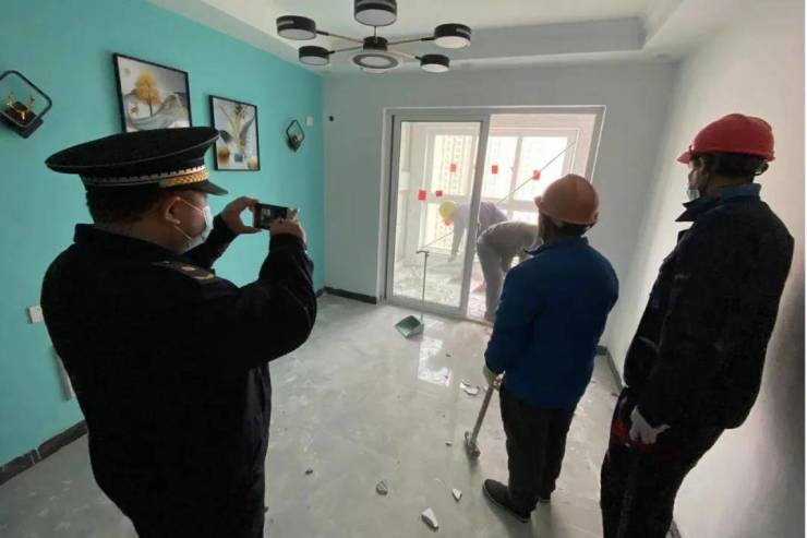 凌虹苑是去年新交房的动迁安置小区,由于临近前滩国际商务区,这里吸引了不少在附近工作的人士前来租住。为规范新入住小区住房租赁,三林镇综合行政执法队针对该小区群租现象浮现的情况,按照“严控增量、消除存量”的工作思路,积极开展房屋违规租赁联勤联动整治。整治前,城管队员联合社区居委、物业,对小区内的群租房进行了全面排摸,掌握了基础数据,并通过发放违规通知单、群租整治宣传通知书、责令限期整改告知书、进行集中约谈等,进行充分宣传告知。