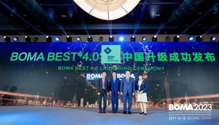 BOMA BEST 4.0可持续性管理认证汉化版发布 BOMA国际主席 Robert Michael Six 先生、BOMA中国主席 顾建平 先生、BOMA中国常务副主席 陶士龙 先生、BOMA中国可持续发展委员会主席 萧惠君 女士上台启动了BOMA BEST 4.0汉化版。4.0版是BOMA BEST的第三次升级,依据国际养老基金、保险公司资产管理要求,从认证内容、操作平台、续审机制全面升级,支持商业地产行业做好可持续性运营管理工作,满足投资者对风险管理、成本控制、环保合规的要求;满足租户对健康安全、业务持续运营、平等包容的要求,促进行业绿色低碳高质量发展,增强建筑招商融资优势,繁荣区域楼宇经济。