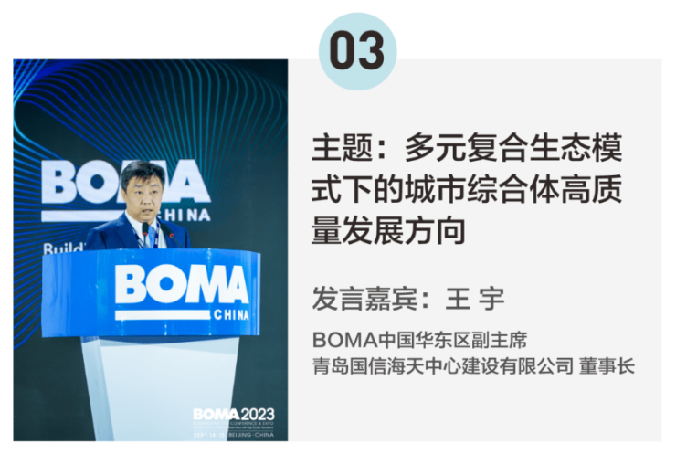 未完待续…… 2023BOMA中国商业地产行业年会完美收官,期待2024年与您再聚首。 接下来两周时间,我们将在BOMA官方微信陆续开放最新汉化国际标准指南下载、最新行业调研报告、主论坛精彩主题演讲视频、分论坛演讲视频、敬请期待。