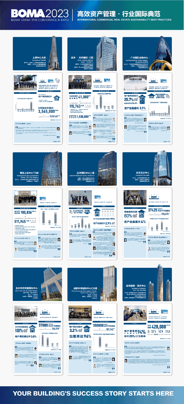 专访邀请到新浪地产、中国消费者报、中国经济时报、房天下、环球网、新地产财经、中华网多家媒体,围绕 主题1)BOMA BEST认证4.0发布;主题2)《BOMA中国2023商业地产行业人才发展调研报告》;主题3)BOMA最新汉化国际标准;主题4)北上广青四大地标建筑ESG战略;对国内外业主方、管理方、国际标准运营管理专家、供应商高层展开深度专访。