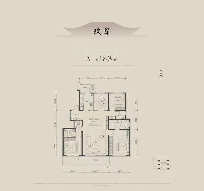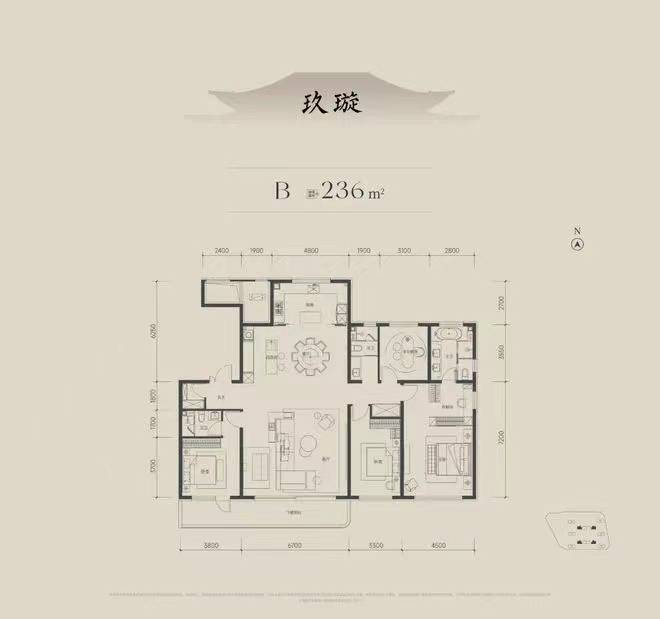 户型:建筑面积约183-236㎡平层四居