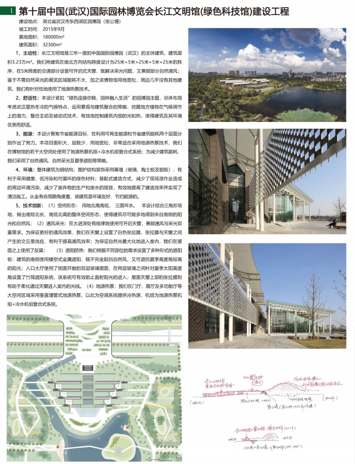 专家评语-宋晔晧:“自然之间”是以某大学德州太阳能十项全能项目为基础完成的。在竞赛设计时充分考虑了太阳能十项全能竞赛的要求,并在竞赛中取得了不错的成绩。显然,太阳能十项全能竞赛的要求在很多方面与主动式建筑的要求优质契合,充分说明了面向未来的理想建筑有其共通之处。 第十届中国(武汉)国际园林博览会长江文明馆(绿色科技馆)建设工程AH2020-027Thomas Herzog建筑设计事务所+武汉华中科大建筑规划设计研究院有限公司设计团队:李保峰、聂华波、刘琼、金铃、沈世莹、黄磊