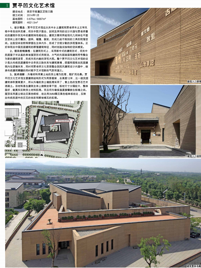 专家评语-宋晔晧:贾平凹文化艺术馆有特色的地方在于通过设计诠释了当地文化传统。其中较有特色的是院落体系的现代化转译。当然项目也采用了全新的技术体系来完成传统的演绎,例如采用了来源自夯土启发的混凝土挂板。总体来说,文化馆的整体氛围具有强烈的在地性特征。 民航运行管理中心和气象中心工程及民航情报管理中心工程AH2020-043