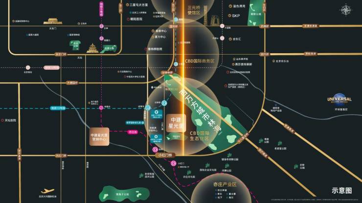 这款建面约96㎡三室两厅两卫户型,首先得益于其优越的地理位置。项目位于朝阳东三环金轴,距离使馆区、三里屯太古里、国贸CBD、工体、SKP等城市核心商圈仅约6.5公里,周边拥有百万方城市林海和十六大城市公园/郊野公园,提供了自然生态居住环境。交通方面,项目邻近地铁10号线和亦庄线,与三/四环路、京沪高速、小红门路、成寿寺路等纵横交错的城市主干道紧密相连,构筑便捷的”双轨两横三纵”通勤网络。教育与医疗资源同样丰富,周边有北京市八十中、朝阳实验小学等知名学府,以及天坛医院、中科院肿瘤医院等三甲医疗机构,保障了日常生活需求。