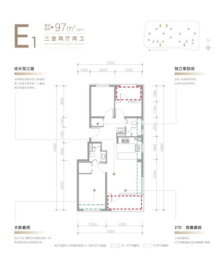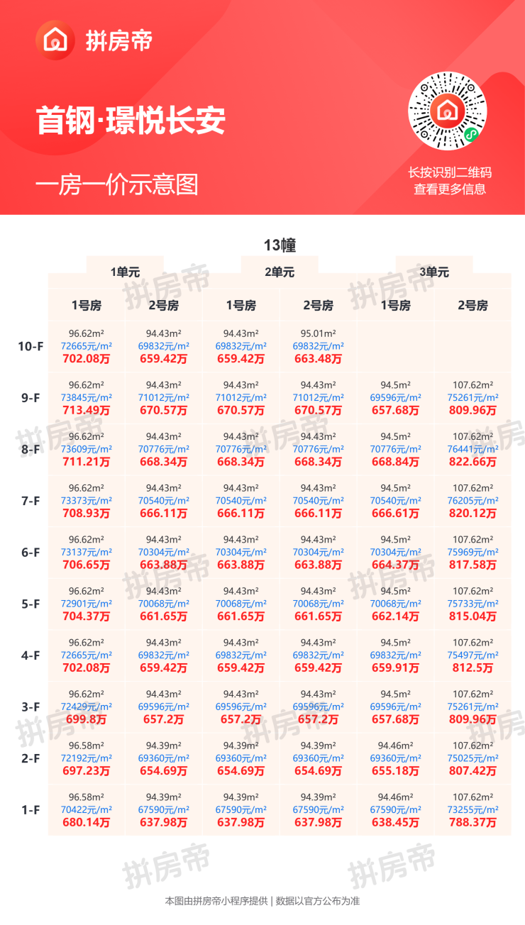 在璟悦长安的所有户型中,97平米是得房率最高的段位,最高实际得房率,达到了98.67%,位于13#。