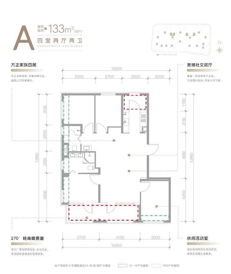 作为璟悦长安的楼王户型,133平段位分布在5#的东西边户,及6#全栋。它的总套数为72套,占比达到10.3%。133平没有中间户,全部为边户型。这让它的实际得房率,在93.12%至94.45%之间。经典的四叶草造型。