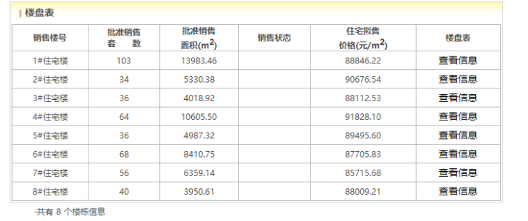 8栋楼共推出437套房源,准许销售面积57646.08㎡,拟售均价区间为8.57万-9.18万元/㎡,项目整体拟售均价约8.9万元/㎡。
