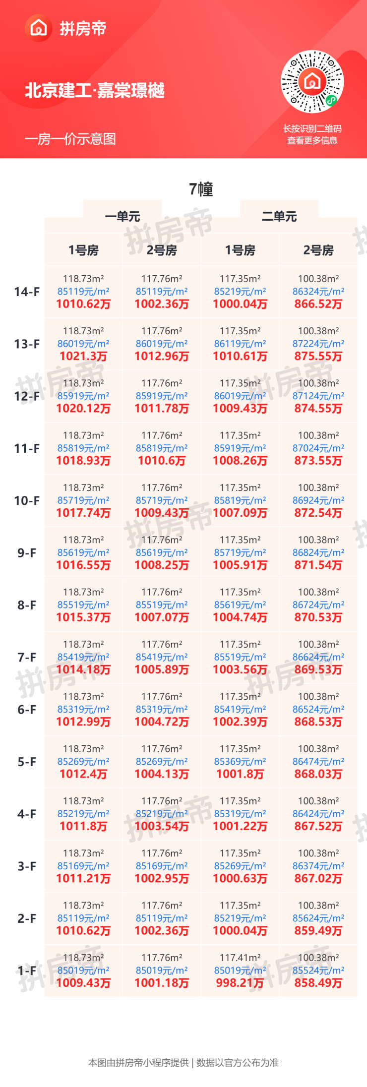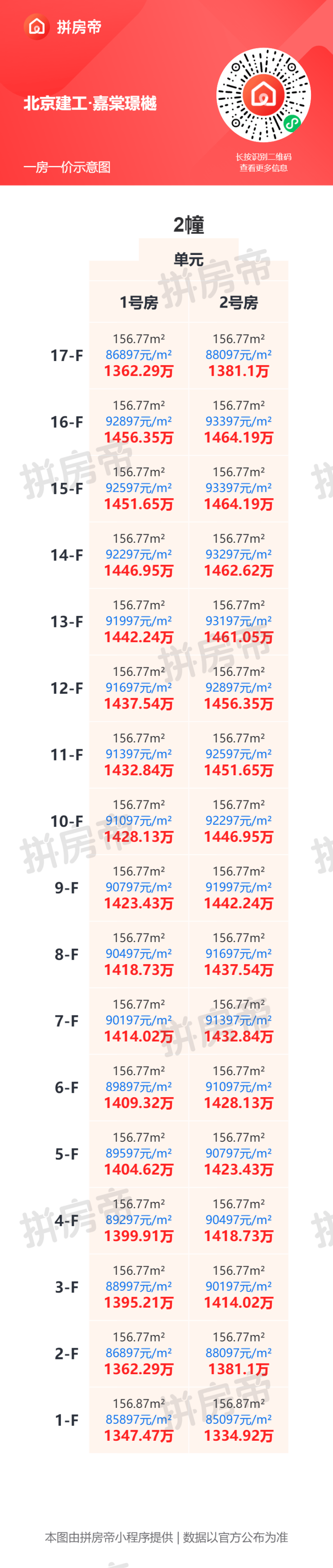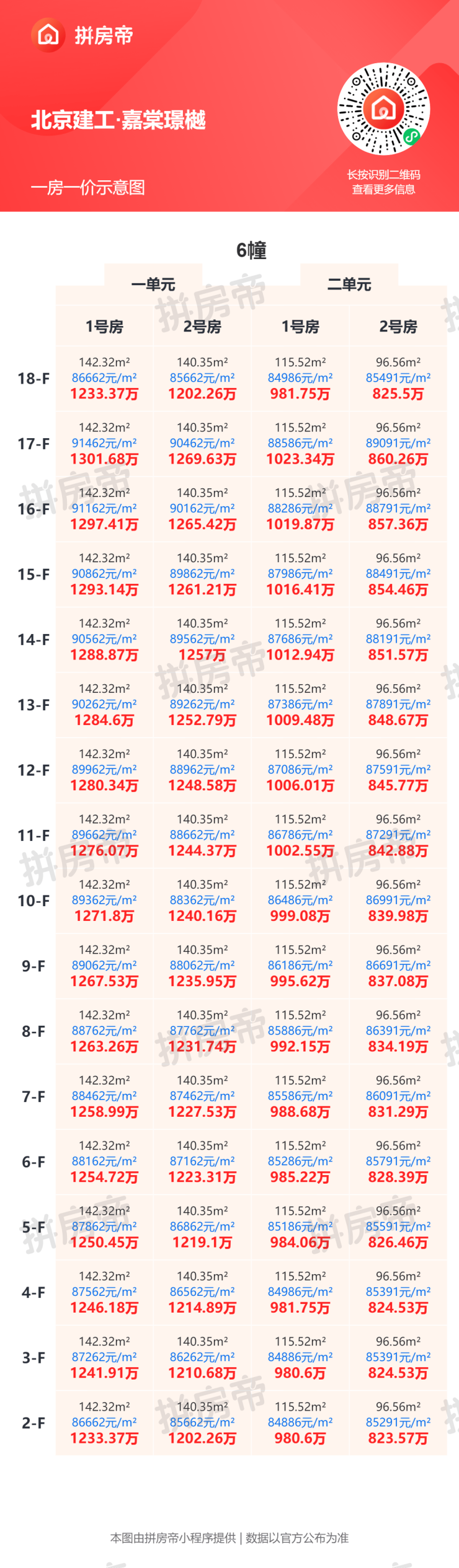 不同户型单价存在明显差异,具体房价可参考一房一价表。