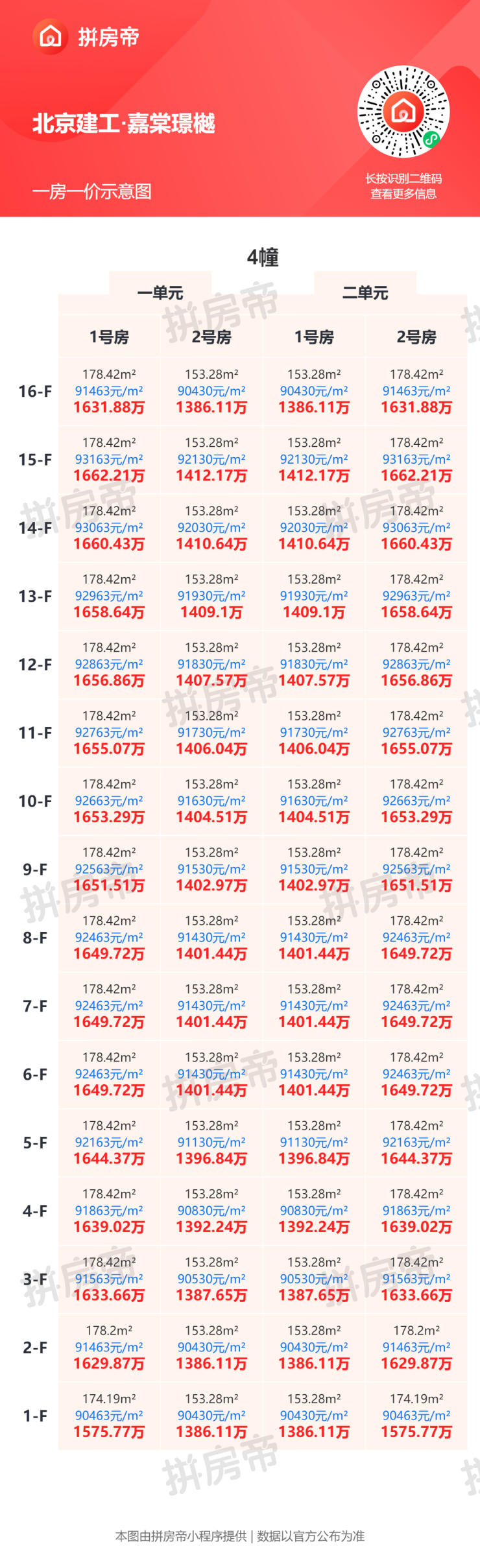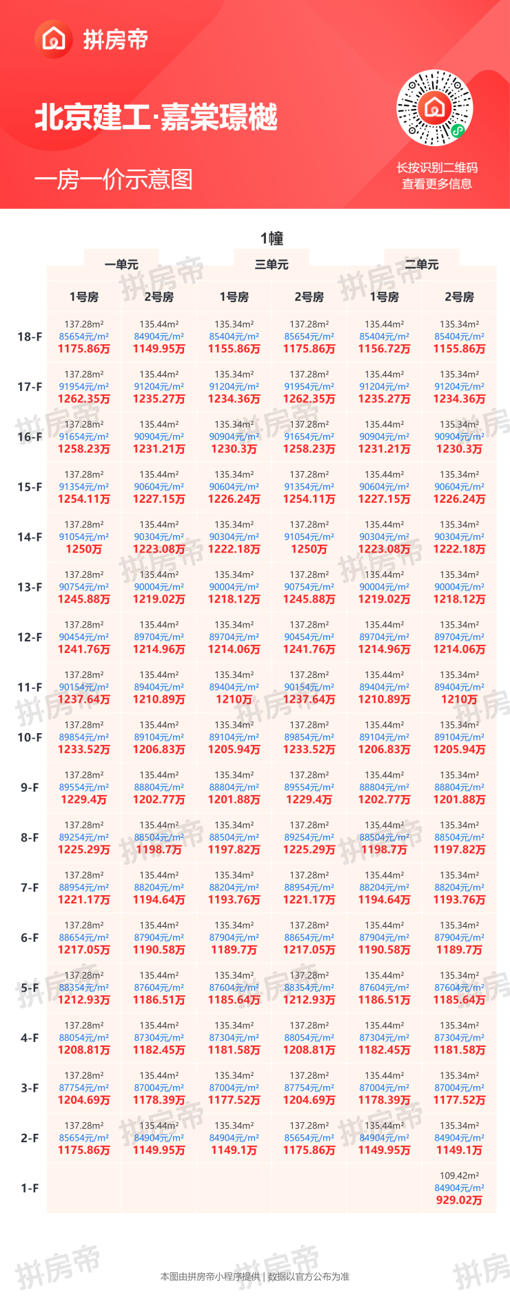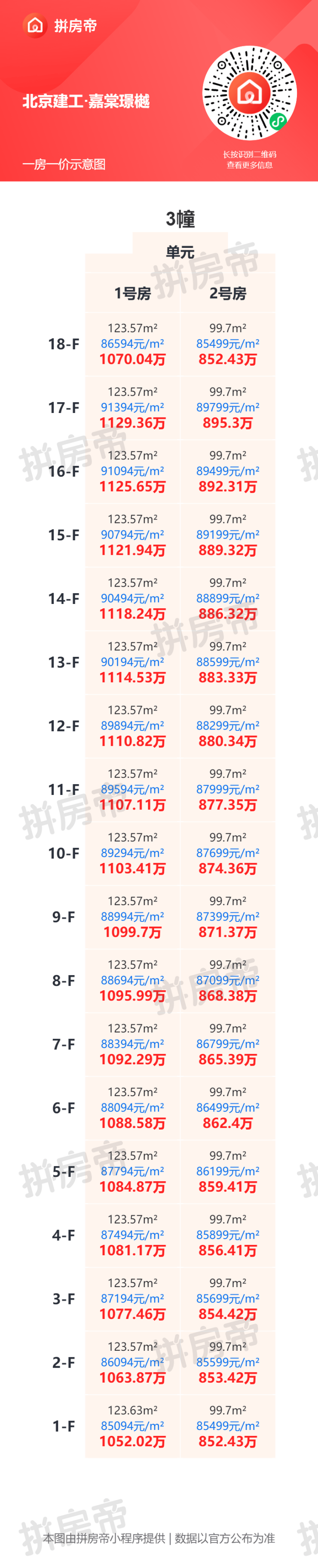 不同户型单价存在明显差异,具体房价可参考一房一价表。