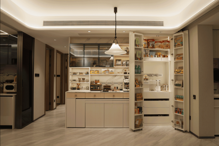 同时,贝涟C1聚焦用户对于生活场景中的上百项痛点,提出了“懒生活”的三大解决方案:满载收纳、智慧互联、功能便捷。满载收纳方面,以系统化的收纳设计,提升每一寸空间的价值,以97m²C户型为例,规划九大收纳模块,发挥垂直及隐藏空间价值,设计立体餐厨柜、门后薄柜等,轻松解决业主的储物难题;智慧互联方面,精装交付的主要部品部件均接入华为鸿蒙智家系统,共同构筑起互联互通的智能生态;功能便捷方面,坚持“功能>品牌”的精装选品逻辑,明确选品优先级,确保业主入住后能享受到优质且耐用的好产品。