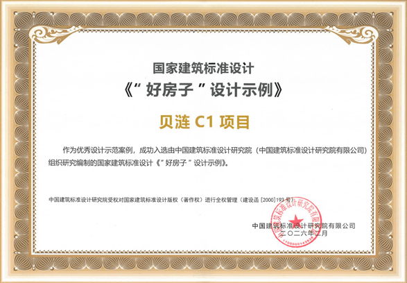 此外,近期贝涟C1项目也入选了中国建筑标准设计研究院组织编制的国标图集《“好房子”设计示例》,成为全国建筑行业“好房子”建设技术参考范本之一。
