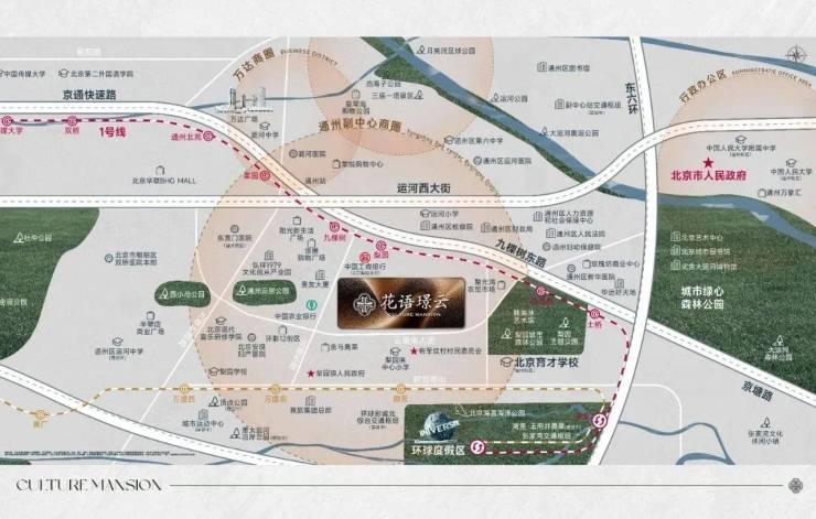通州梨园,北京副中心"黄金走廊"的咽喉之地。中国铁建第61座"花语系"作品——花语璟云落子于此,以1.7容积率打破副中心高密开发惯例。项目距地铁1号线梨园站仅400米,串联故宫、金融街、环球影城等城市动脉,形成"出则繁华、入则宁静"的双重生活界面。