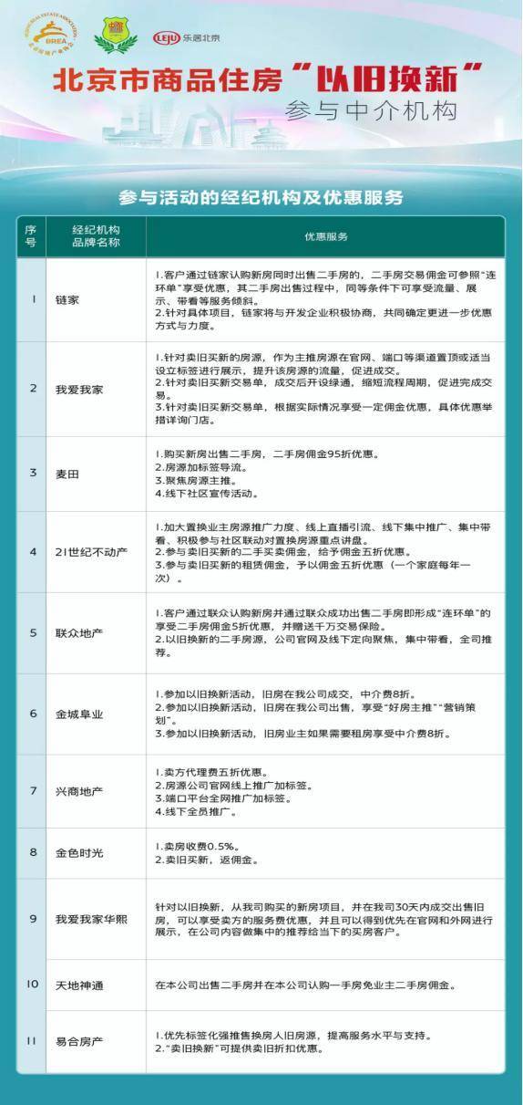 而且,参与活动的房地产开发企业和中介机构还可以自主决策,为“以旧换新”居民提供购房优惠、专属中介费优惠等服务。