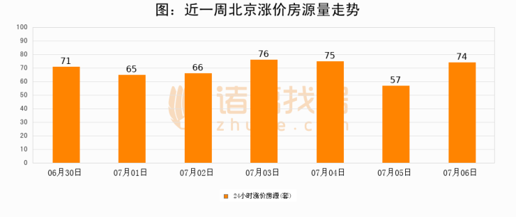 根据诸葛找房数据显示,北京24小时涨价房源量为74套,较07月05日增加17套,环比上涨29.8%。与此同时,涨价房源占比小幅扩大,业主信心有所提升。