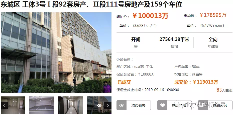 但是,这一次,是产权拍卖,而且是打折扣!30亿的估值,20亿出售!便宜10个亿!单价2.49万元/平,核心区工体万众瞩目之地,这个价格还是很公允的--买家,会是您的公司吗?市场价6.6折,预计可以抄底拿到哦!