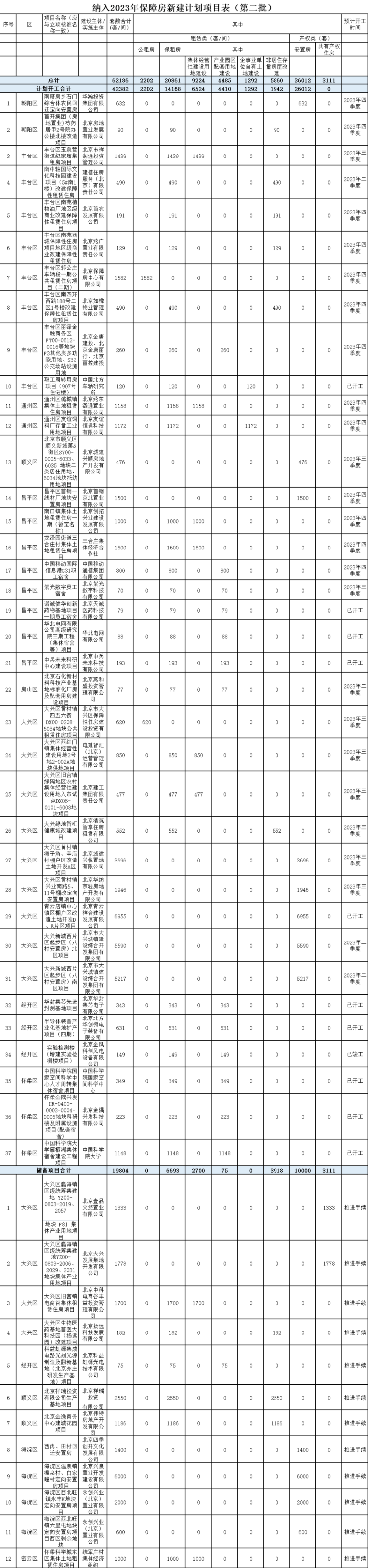 2、北京2023年第二批计划筹建保障性住房6.2万套