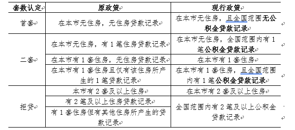 10月31日,北京市住房公积金管理中心发布《关于优化住房公积金个人住房贷款中住房套数认定标准的通知》,明确自11月1日起,借款申请人家庭名下在本市无住房且全国范围内无公积金贷款记录的,执行首套住房公积金贷款政策。具体调整如下表所示: