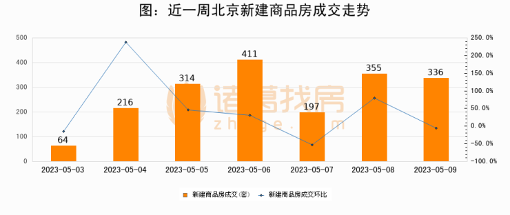 【北京成交日报】05月09日新房成交336套、二手房634套;涨价房源181套