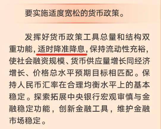另外,会议提及要实施适度宽松的货币政策,“适时降准降息”。