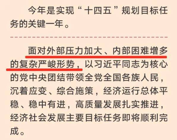 “面对外部压力加大,内部困难增多的复杂严峻形势...”